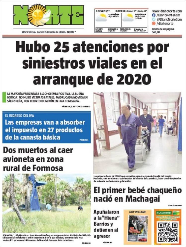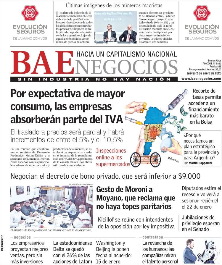 A continuación, repasamos las tapas de los diarios del jueves 2 de enero. Se trata de las primeras portadas del año, ya que el miércoles 1° no salen las ediciones en papel de los diarios. El regreso del IVA a los productos de la canasta básica es uno de los temas principales, por un acuerdo Gobierno-empresas, el impacto será menor al 21% en los precios.