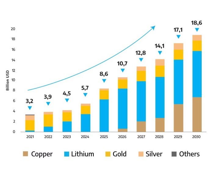 Nadav Rajzman, economista y exdirector nacional de Promoción y Economía Minera del Ministerio de Desarrollo Productivo, afirmó que “únicamente el CAPEX de los principales siete proyectos (más avanzados) se ubica arriba de los US$20.000 millones en inversiones y podrían incrementar las exportaciones en al menos US$10.000 millones. Consideremos que Chile exportó US$55.000 millones en 2022 y Perú US$38,5 millones”.