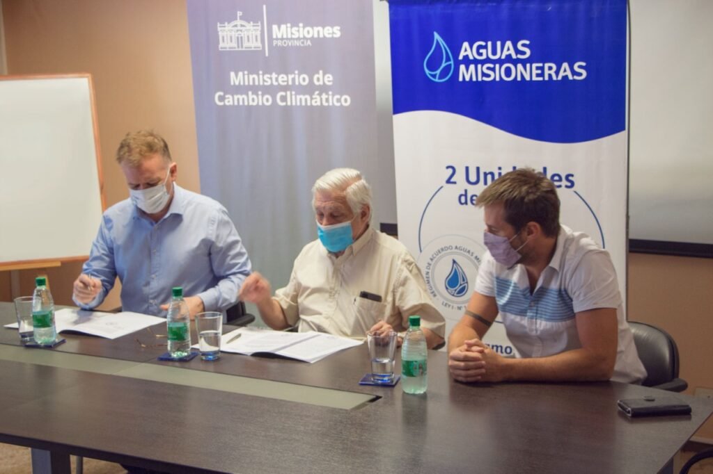 Aguas Misioneras firmó un convenio de cooperación y asistencia técnica con la Secretaria de Cambio Climático para trabajar en medidas que mitiguen la crisis del agua. “Una acción importante que se suma para que Misiones siga creciendo como provincia líder en materia ambiental y climática en la región”, destacaron Jorge Galeano, presidente de Aguas, junto al ministro de Cambio Climático, Patricio Lombardi. .