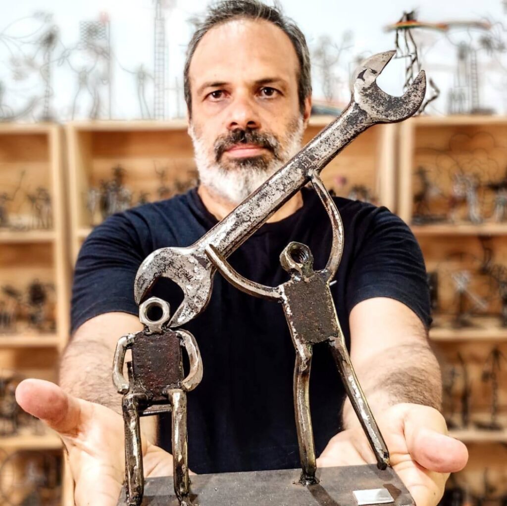 De esa manera y de forma intuitiva tuvo la necesidad de contar cosas con algún medio artístico. En la infancia con dibujos, y más adelante con intentos en la escritura y la música. Pero en un momento fortuito, que podría situar en el 2017, descubrió que el medio que necesitaba para contar cosas era el metal. “Me sentí atraído por la soldadora y los chispazos que estas producían al fundir metales y unirlos. Y ahí sentí que encontraba algo”, dice Pedro.