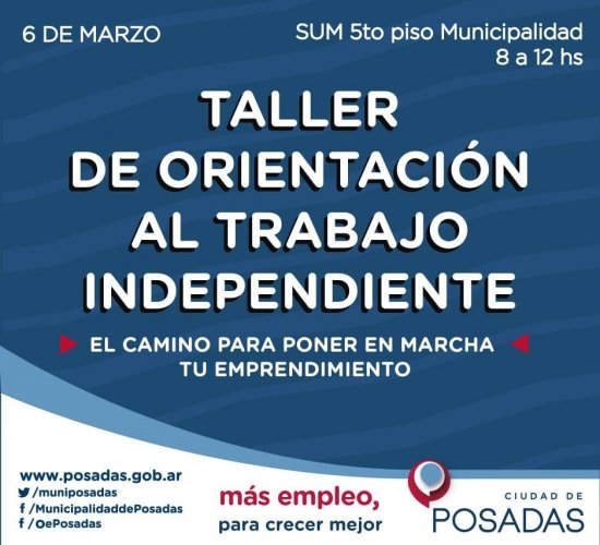 Esta mañana desde las 8 comenzó en el salón SUM de la Municipalidad de Posadas (5to piso) el Taller de Orientación al Trabajo Independiente. La Municipalidad informó que todavía quedan cupos para participar del mismo.