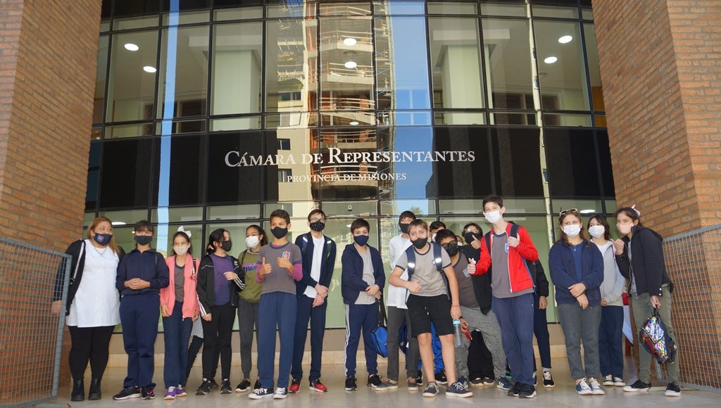 En ese contexto, estudiantes y docentes de la escuela 464 Almirante Brown de Posadas participaron de la propuesta diseñada por el Parlamento Misionero para las visitas guiadas, que en este caso consistió en el recorrido de instalaciones, entre ellas el Recinto de Sesiones, exposiciones y actividades en el Embajador Legislativo.