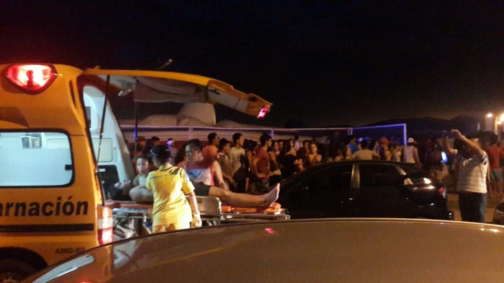 Al momento del hecho habían ocho personas en el tobogán, cinco de ellas lograron completar el salto, mientras que otras quedaron atrapadas, una joven cayó en picada al suelo cuando el tobogán comenzó a inclinarse y resultó con graves golpes, informó José Miguel González, corresponsal de ABC Color en Encarnación.
