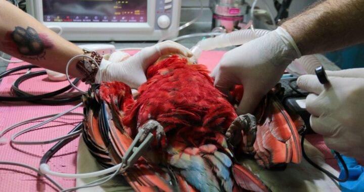 En el Parque El Puma controlan el estado sanitario de dos guacamayos rojos rescatados en Posadas