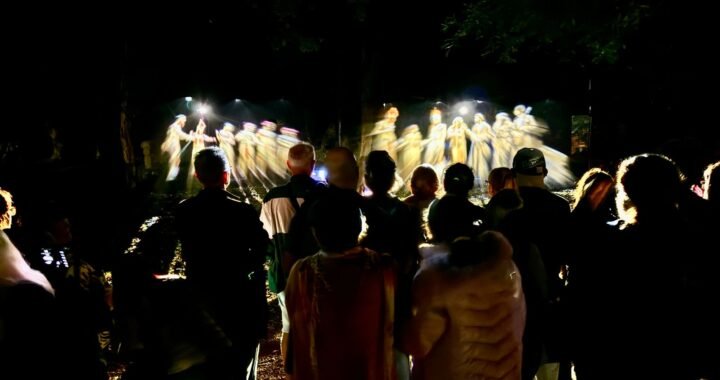 Durante 45 minutos, la historia cobra vida en medio de la naturaleza, con el cielo despejado y la luna acompañando el recorrido, mientras las imágenes se funden con el relato del cacique que guía a los visitantes.