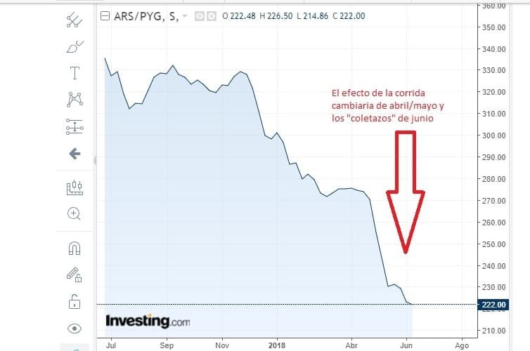 La corrida cambiaria de abril y mayo y los coletazos de estos últimos días llevaron al peso argentino a cotizar en un mínimo histórico contra el guaraní paraguayo.