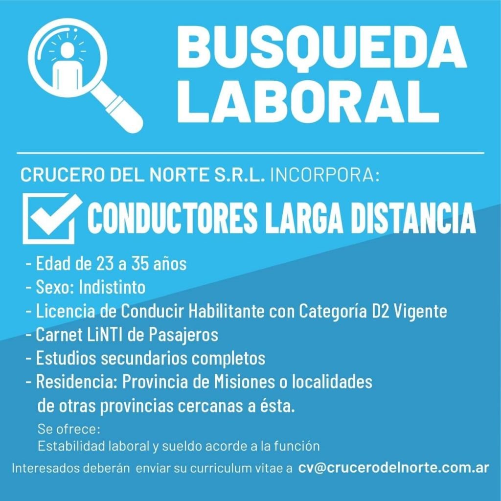 La empresa misionera Crucero del Norte, líder en transporte de larga distancia, acaba de lanzar una convocatoria laboral para choferes de larga distancia, de sexo indistinto.
