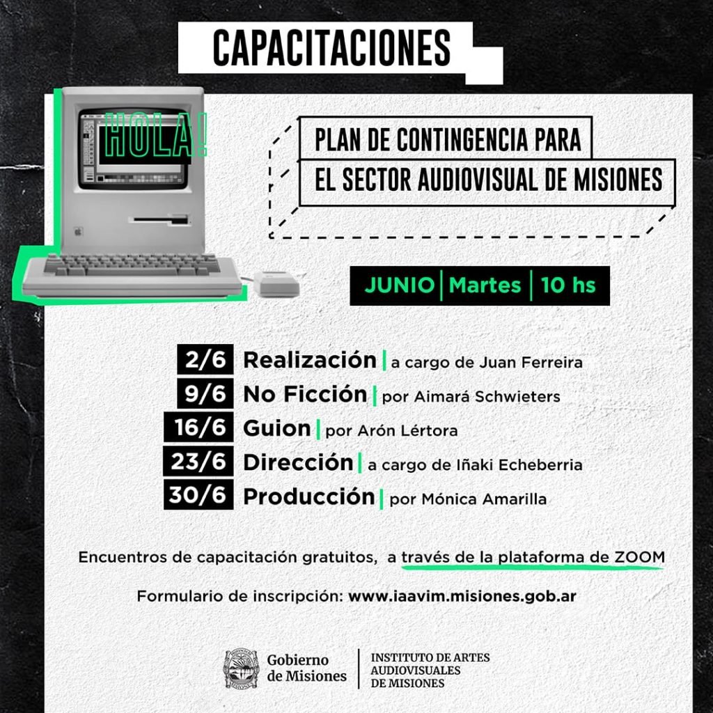 Ante la incertidumbre de gran parte del sector audiovisual de la provincia que se encuentra imposibilitado de rodar por la pandemia del Covid-19, el Instituto de Artes Audiovisuales de Misiones (IAAviM) avanza en la segunda etapa del Plan de Contingencia, ofreciendo capacitaciones online durante el mes de junio.