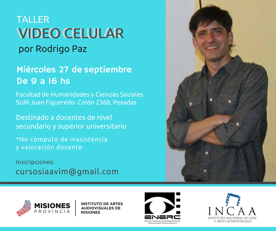 Mañana miércoles, de 9 a 16 hs, tendrá lugar el Taller “Video Celular”, a cargo de Rodrigo Paz, experimentado capacitador de la Escuela Nacional de Experimentación y Realización Cinematográfica (ENERC), dependiente del INCAA.