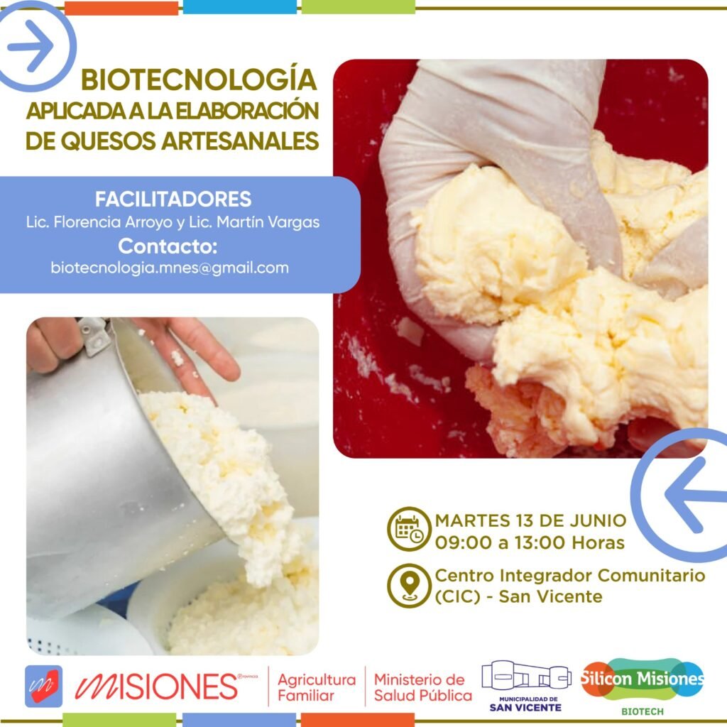 En el marco de las actividades organizadas en forma conjunta entre el Ministerio de Agricultura Familiar, la arteria Biotech de Silicon Misiones y los municipios 25 de Mayo, San Vicente y colonia Aurora, se llevarán adelante tres jornadas de capacitación en Biotecnología aplicada a la elaboración de quesos artesanales, dirigidas a pequeños productores que se inician en la actividad.