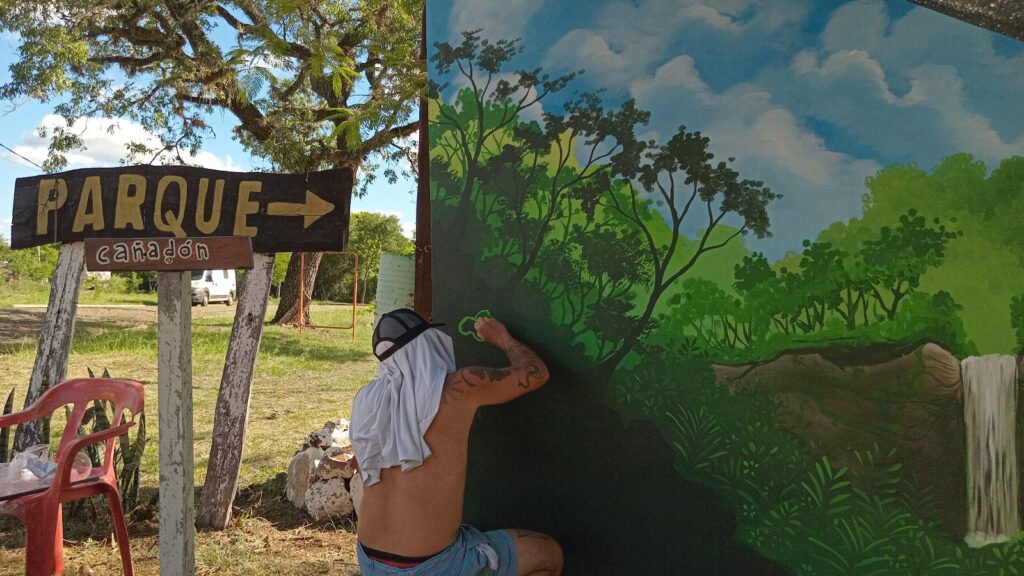 En la rotonda de ingreso al casco urbano se situó un tríptico que hace alusión a la vida de Manuel Belgrano, su obra y paso por la localidad en lo que era una de las postas del Camino Real de los Jesuitas. En el acceso al Parque Provincial Profundidad se ubicó una imagen del salto en el cañadón a modo de ícono indicativo del ingreso. El urunday y los habitantes originarios son parte del legado cultural de naturaleza y convivencia con el entorno. En el lugar histórico en el que hubo un almacén de ramos generales, una gran imagen celebra el lugar de reunión comunitaria para esparcimiento. Doña Gerónima, titular del comercio, forma parte de la escena costumbrista en la que se muestran juegos como el sapo y la taba.