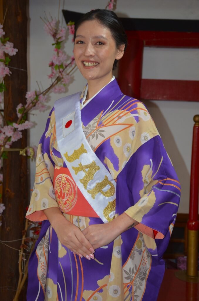 La flamante soberana tiene 23 años, es oriunda de Jardín América y es técnica en Producción agropecuaria y técnica en gastronomía. María Akari Nishino recibió sus atributos de manos de la reina saliente, Namie Tatiana Fukuda, quien fue reconocida con la banda de Embajadora de la colectividad.