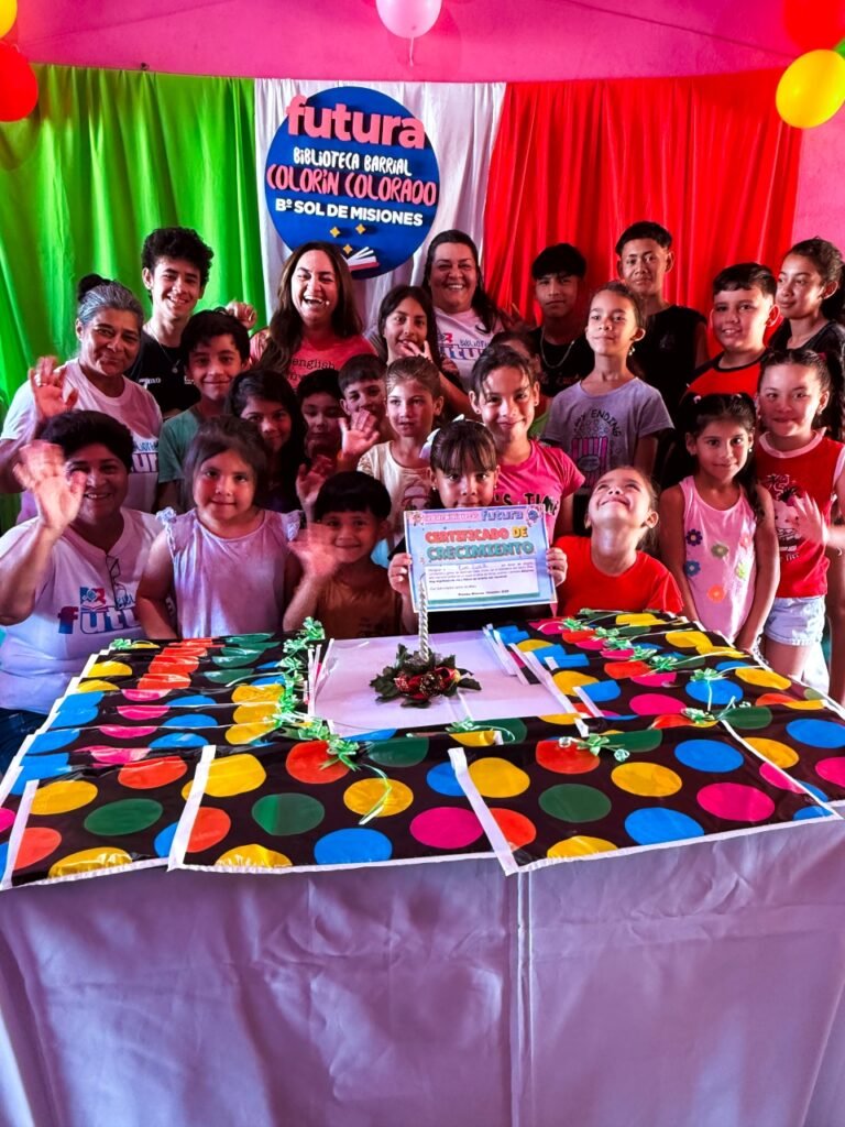 Durante 2025, la Red de Bibliotecas Barriales Futura sostuvo más de 60 horas semanales de actividades educativas en tres barrios de Posadas, acompañando a alrededor de 150 niños y niñas y a sus familias. Este trabajo, anclado en la cercanía territorial, se apoya en promotoras educativas formadas en los propios barrios, en articulación con instituciones comprometidas con el desarrollo humano y comunitario.