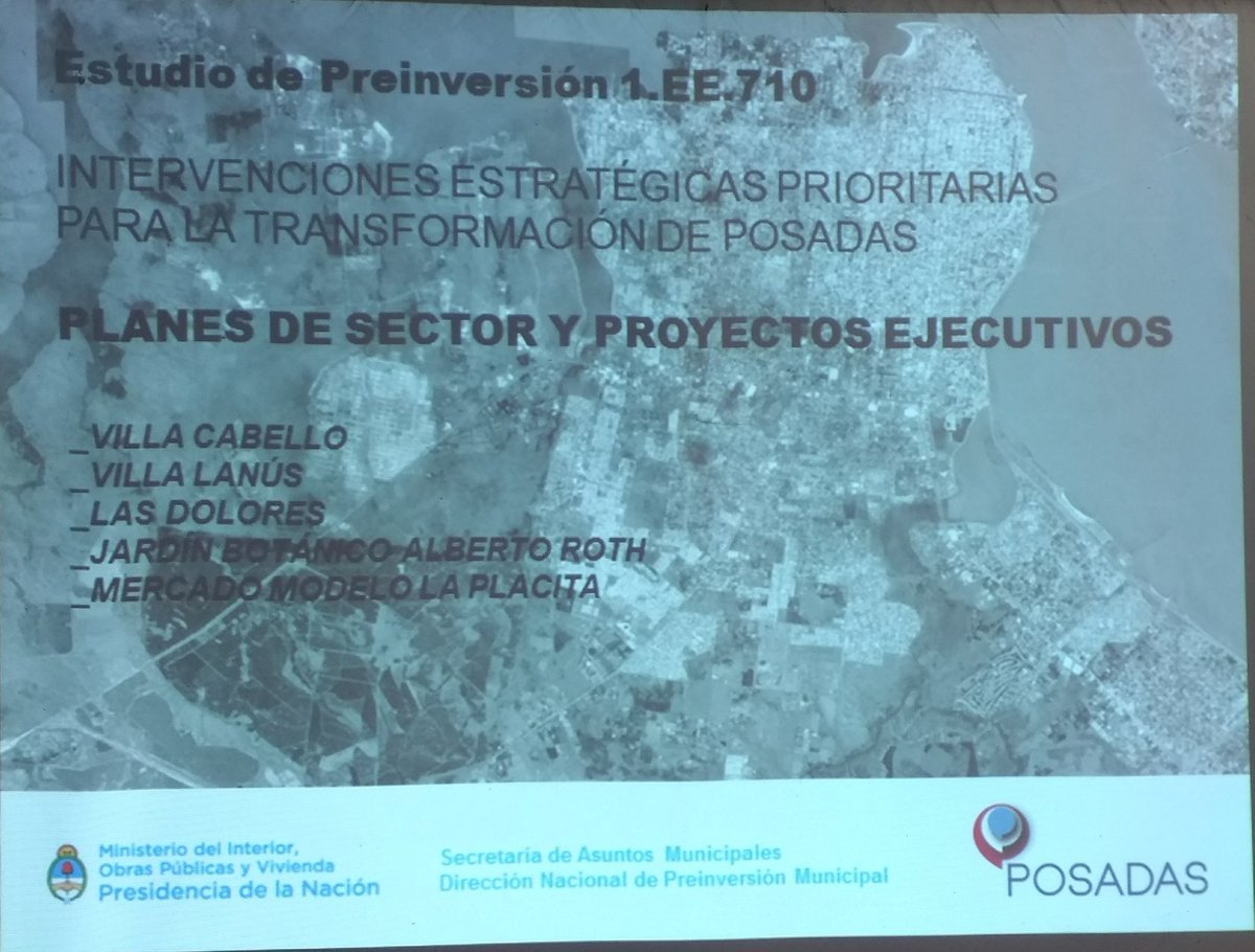 El mismo es financiado con fondos no reembolsables por la Dirección Nacional de Preinversión Municipal (Dinaprem), dependiente del Ministerio del Interior y busca obtener propuestas para el desarrollo y mejora de las condiciones urbanísticas y de espacios públicos de cinco áreas de Posadas: Villa Cabello, Miguel Lanús, Las Dolores y los entornos urbanos del Mercado Modelo La Placita y el Jardín Botánico Alberto Roth, así como los proyectos ejecutivos para la puesta en valor de estos últimos.