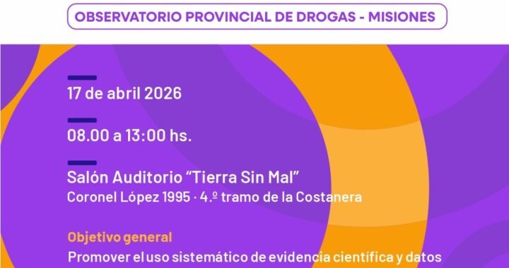 El 17 de abril desde las 7.30 en el Auditorio “Tierra Sin Mal” se realizará el Congreso “Evidencia que Transforma: Ciencia, Información y Decisiones para la Prevención de los Consumos Problemáticos y las Adicciones”, organizado por la Secretaría de Estado de Prevención de Adicciones y Control de Drogas de la Provincia de Misiones.