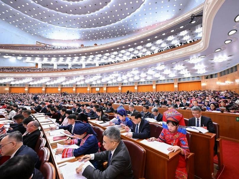 (260305) -- BEIJING, March 5, 2026 (Xinhua) -- The opening meeting of the fourth session of the 14th National People's Congress (NPC) is held at the Great Hall of the People in Beijing, capital of China, March 5, 2026. (Xinhua/Wang Ye)