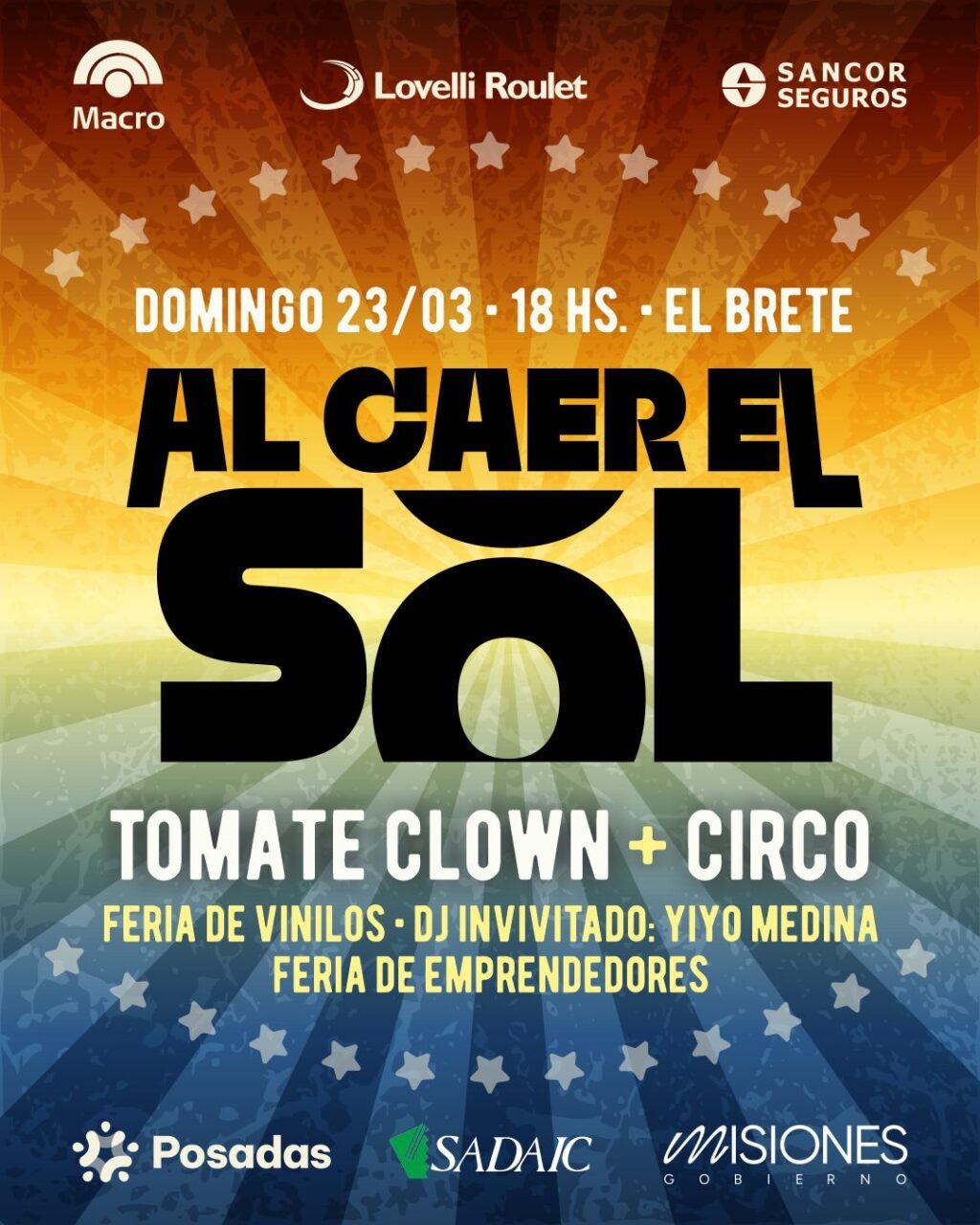 Al Caer el Sol, el ciclo que cada semana reúne música en vivo y vinilos frente al río, cambia los instrumentos musicales por trapecios, narices de payaso y zapatos gigantes, para sumergirse en el universo del circo, llenando de malabares, acrobacias y humor, un nuevo atardecer en El Brete.
