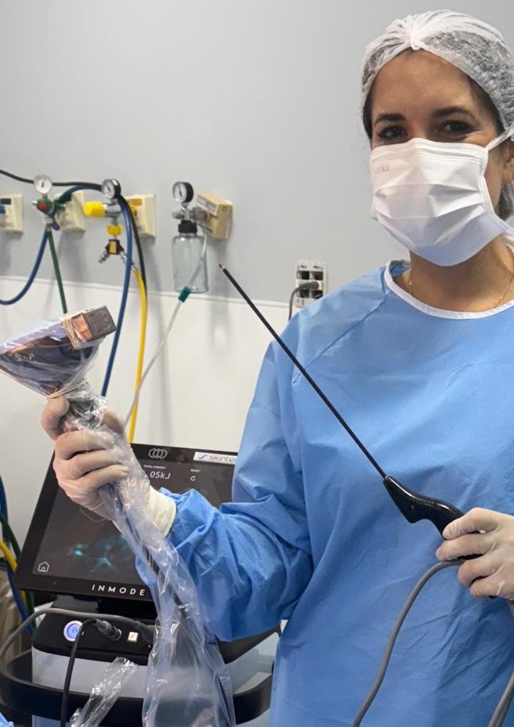 “El gran dilema que tenía en el consultorio era tener que orientar al paciente para que elija entre flacidez y exceso de grasa o tener una cicatriz”, revela la cirujana plástica Luiza Hassan, con más de 10 años de actividad en Foz do Iguaçu (PR). Ella es una de las primeras médicas brasileñas en recibir la máquina Ignite RF, desarrollada por la empresa israelí InMode.