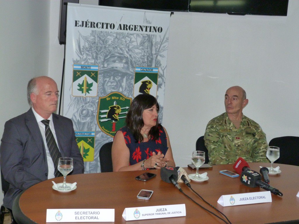 En una conferencia de prensa en el Comando de la Brigada de Monte XII (Ejército Argentino), se informó a la comunidad sobre los procedimientos y medidas de seguridad de las urnas para las elecciones de este domingo. La conferencia estuvo encabezada por el Comandante de la XIIda Brigada de Monte Juan Antonio Zamora y su Estado Mayor, la Jueza Federal de Cámara, Ana Lia Caceres de Mengoni y el secretario del Tribunal Electoral, Eduardo Bonetto.