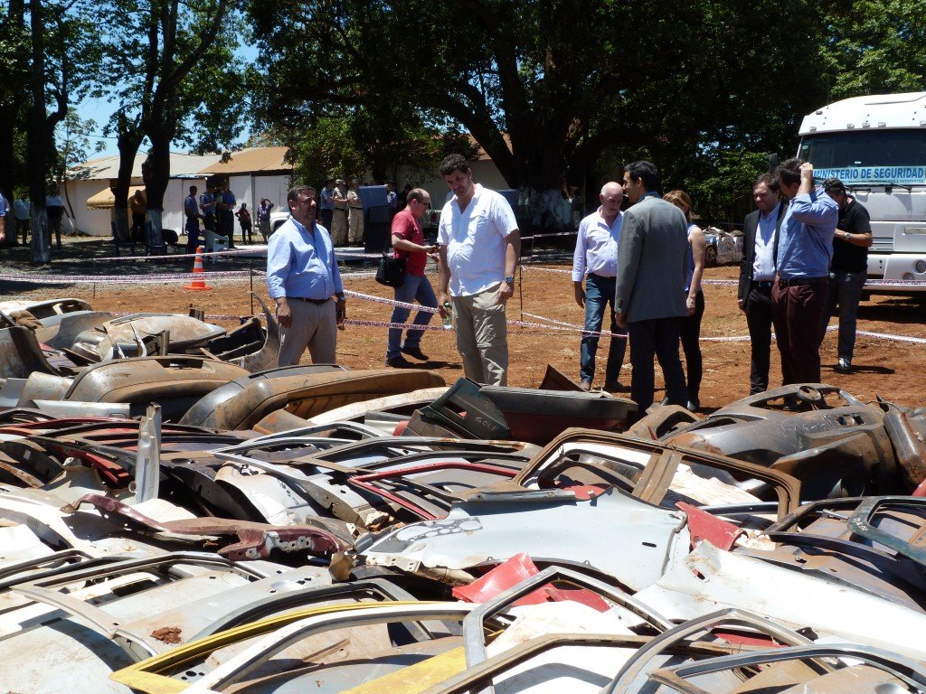 A partir de un convenio entre el Ministerio de Gobierno de Misiones y la Secretaría de Seguridad de la Nación se compactan 120 vehículos y miles de autopartes de origen ilícito en Misiones.