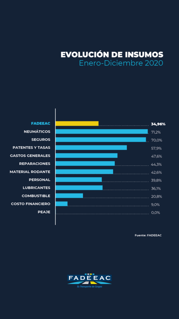 “Es un momento complejo para nuestra actividad porque somos esenciales, pero salir a la ruta nos representa un aumento constante, que no siempre se puede trasladar a tarifas. El transporte de cargas no es formador de precios sino que recibe la carga pasada de los aumentos mensuales”, enfatizó Roberto Guarnieri, presidente de la Federación Argentina de Entidades Empresarias del Autotransporte de Cargas (FADEEAC).