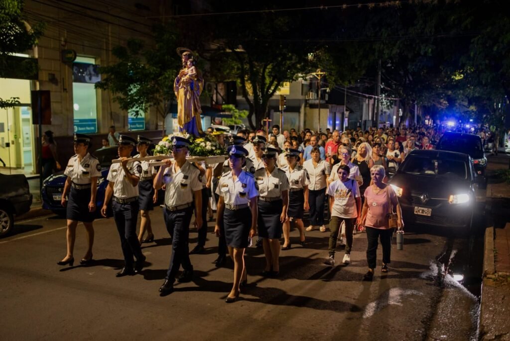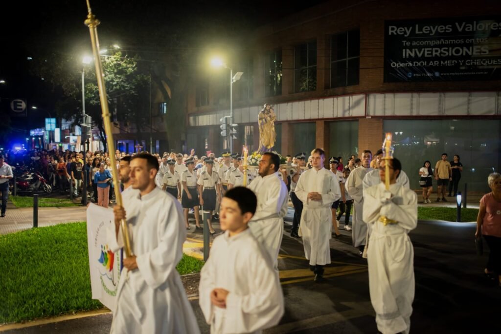 En este sentido y a modo de cierre de la jornada, la misa central, oficiada por el obispo Monseñor Juan Rubén Martínez, comenzó a las 20:00 horas, momento en el que llegó a la plaza la procesión que una hora antes y bajo el lema “Peregrinamos con Fe”, había partido desde la ermita de la Virgen de Itatí, ubicada en Av. Corrientes y Roque Pérez.