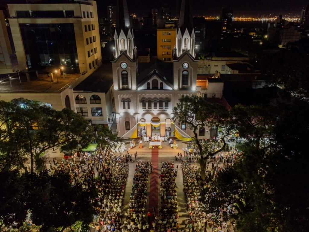 El altar se instaló frente al portal de la Catedral de cara a la multitud que se convocó en gran número, copando gran parte del entorno disponible. En este marco, estuvieron presentes Lucas Romero Spinelli, vicegobernador de la provincia de Misiones, Leonardo Stelatto, intendente posadeño, funcionarios provinciales y municipales.