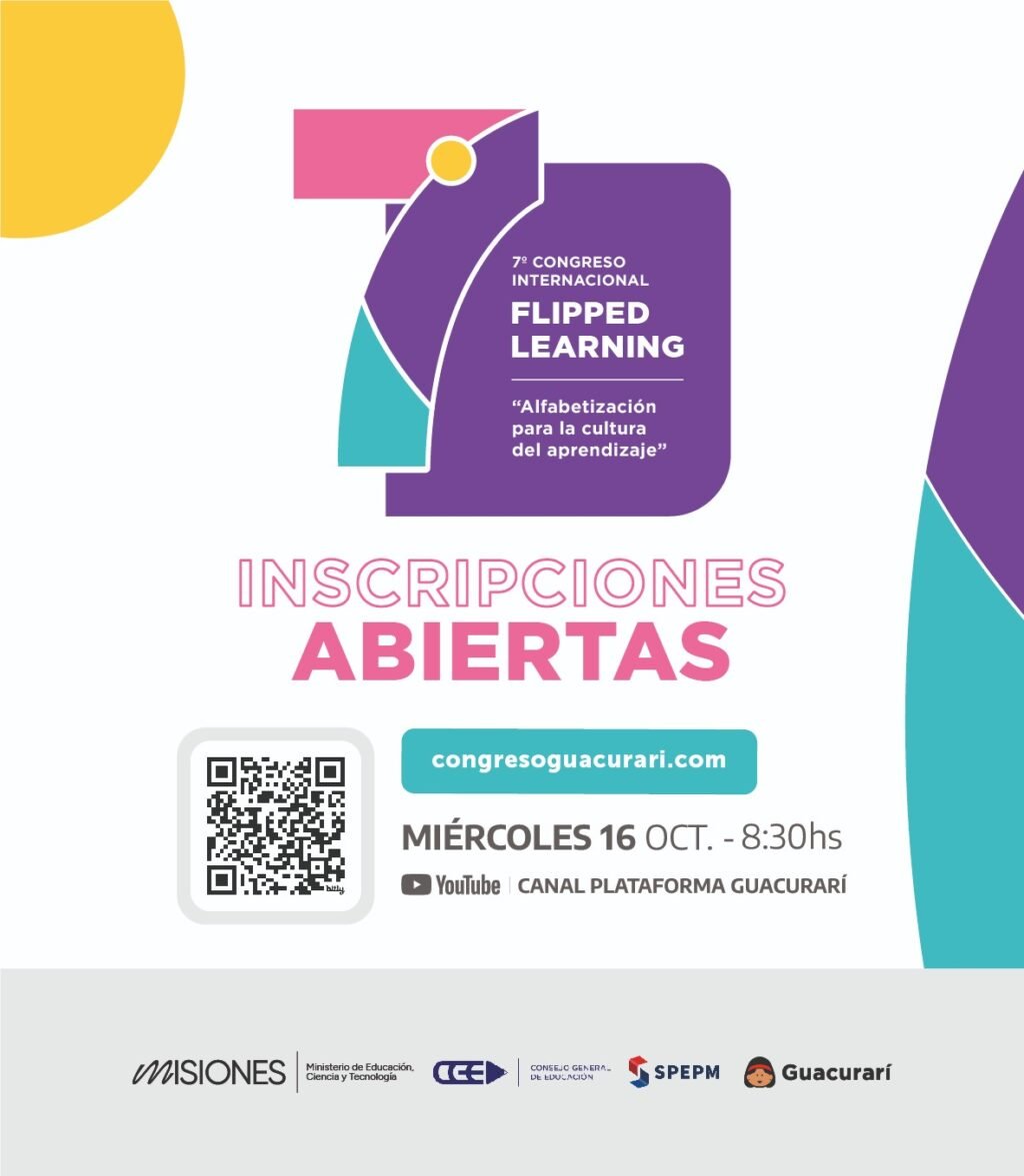 Continúan abiertas las inscripciones para el 7º Congreso Internacional de Flipped Learning, un evento que busca brindar herramientas y conocimientos innovadores para docentes, no docentes y especialistas en educación a cargo del Ministerio de Educación, Ciencia y Tecnología de Misiones y Plataforma Guacurarí.