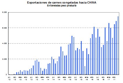 Los embarques a China, registraron un tonelaje récord en el mes de junio: casi 7.5 miles de toneladas que reportaron 30.6 millones de dólares. Un valor equivalente al 64% de lo correspondiente al rubro de carnes congeladas y a la tercera parte del total facturado en concepto de carnes bovinas. Al respecto, Mario Ravettino, Presidente del Consorcio de Exportadores de Carnes Argentinas ABC expresó “su evolución ascendente ha determinado que ya prácticamente duplique en facturación mensual a Alemania, tradicionalmente, el principal país de destino de nuestras carnes bovinas”