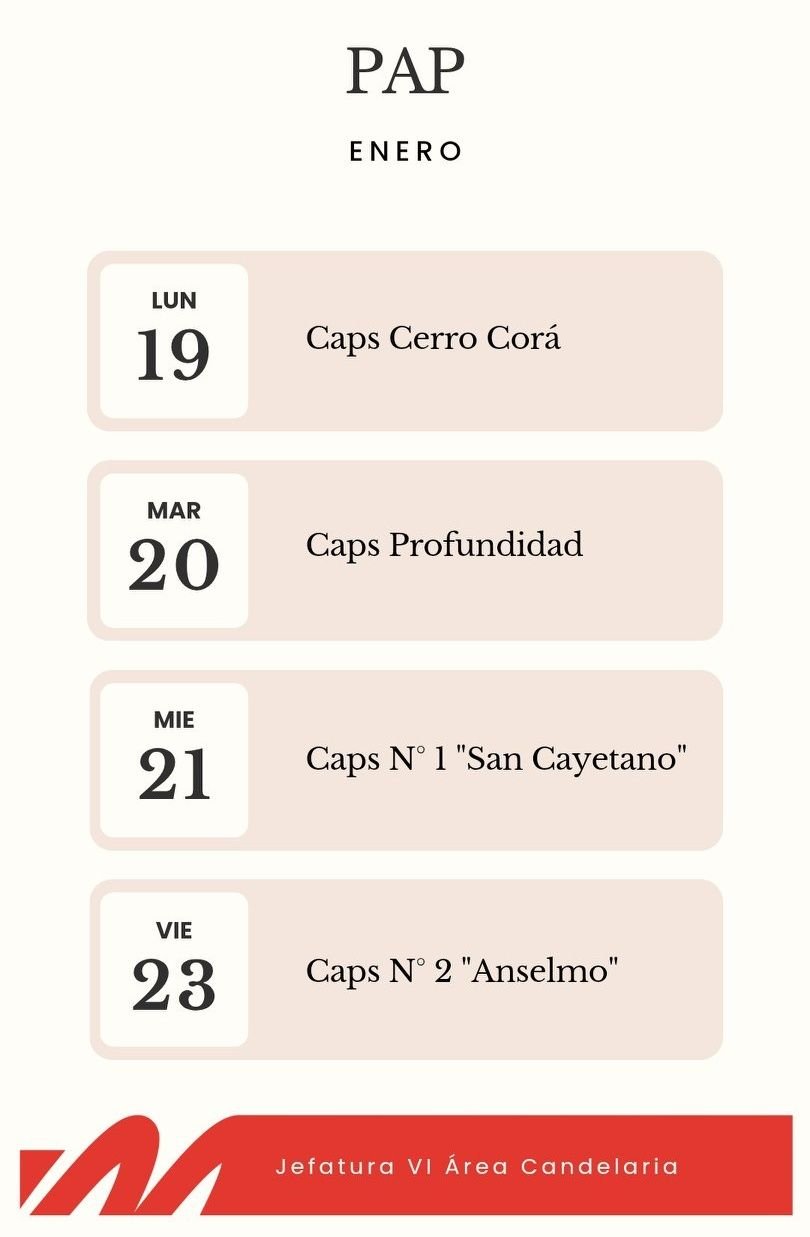 El Área Programática VI informa que entre el 19 y el 23 de enero se llevarán a cabo tomas de muestras para Papanicolaou (PAP) en distintos Centros de Atención Primaria de la Salud (CAPS).