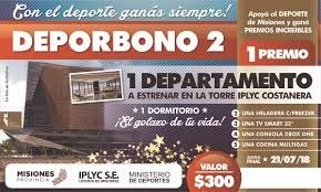 Con un departamento a estrenar en la Torre IPLyC Costanera como primer premio, el Deporbono 2 fue distribuido entre más de 150 instituciones que forman parte del Registro Único de Entidades Deportivas (RUED) del Ministerio de Deportes. El bono se completa con otros cuatro premios: 2º una heladera con freezer; 3º un Tv Smart de 32 pulgadas; 4º una consola Xbox One; y 5º una cocina multigas. El valor es de 300 pesos y todavía se pueden adquirir en entidades deportivas de toda la provincia.