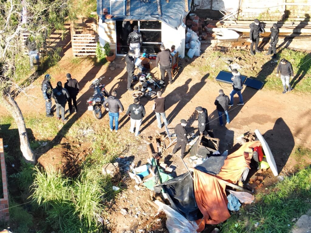 El hallazgo tuvo lugar en un inmueble de la Chacra 145, donde los investigadores detectaron 14 cámaras de seguridad instaladas de forma ilegal, colocadas de manera estratégica en árboles, torres de tanques de agua y postes de alumbrado. El sistema permitía a los ocupantes monitorear en tiempo real los accesos al barrio, brindándoles una ventaja táctica para escapar o esconder elementos delictivos ante la llegada de la Policía.