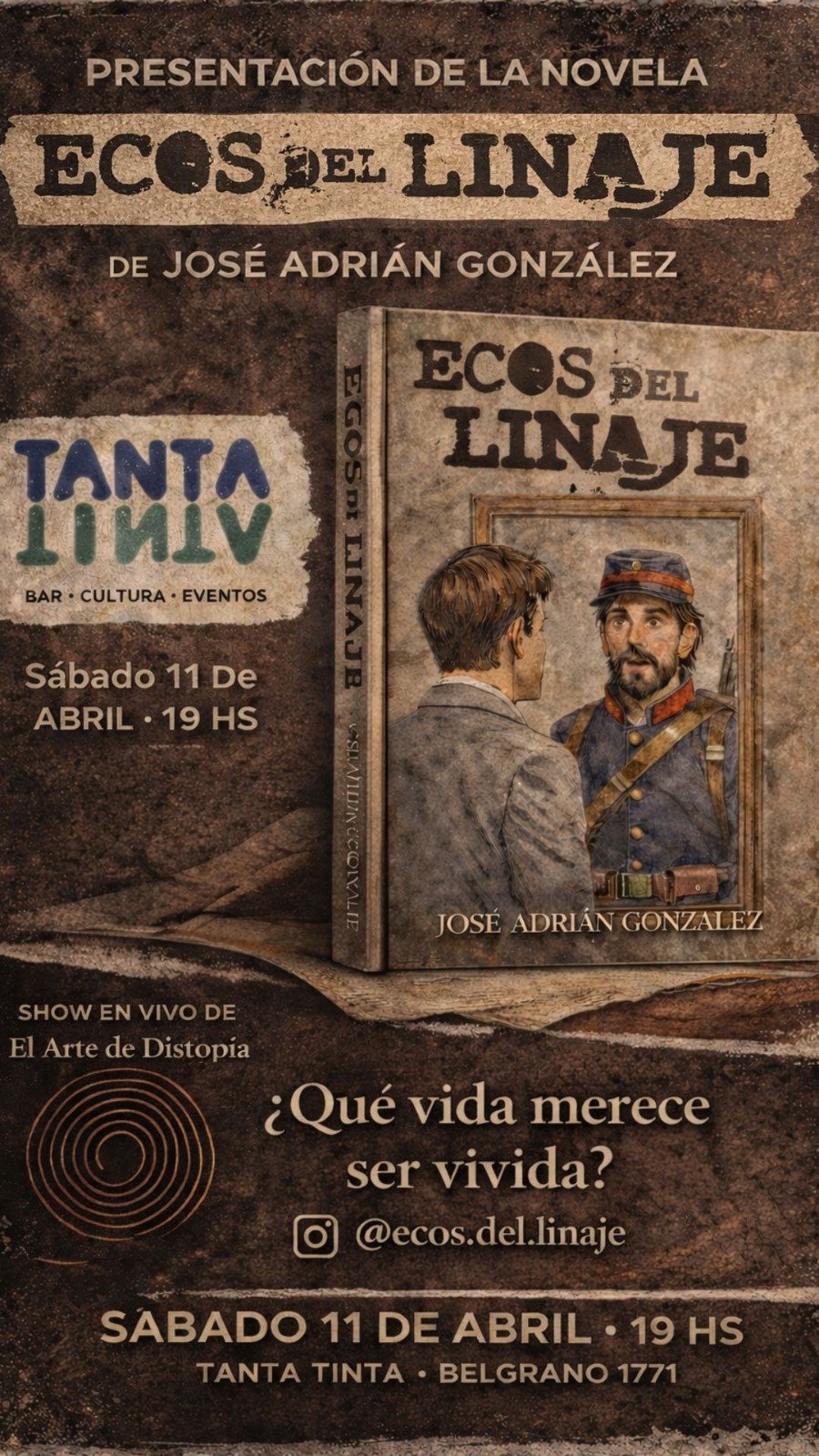 El próximo sábado 11 de abril a las 19 horas, en Tanta Tinta (Belgrano 1771), se realizará la presentación oficial de la novela “Ecos del Linaje”, la primera obra de José Adrián González. El evento, abierto y gratuito, combina literatura, historia y escena cultural en un momento donde la producción intelectual local busca recuperar centralidad en el debate público. ¿Se trata de un hecho aislado o de una señal de reconfiguración del ecosistema cultural en la provincia?