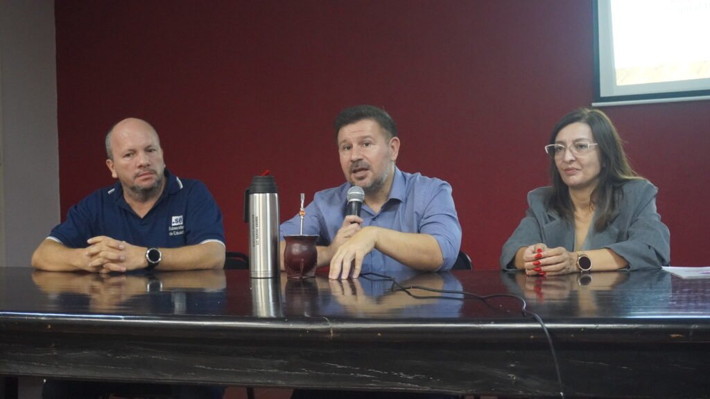 El encuentro estuvo encabezado por el ministro de Educación, Ramiro Aranda acompañado por la subsecretaria de Educación, Gabriela Bastarrechea, el director de Políticas Socioeducativas, Roberto Casa Martín, el referente del programa, Eduardo Ayala, el equipo técnico y los docentes asesores de las escuelas de la región sur seleccionadas.