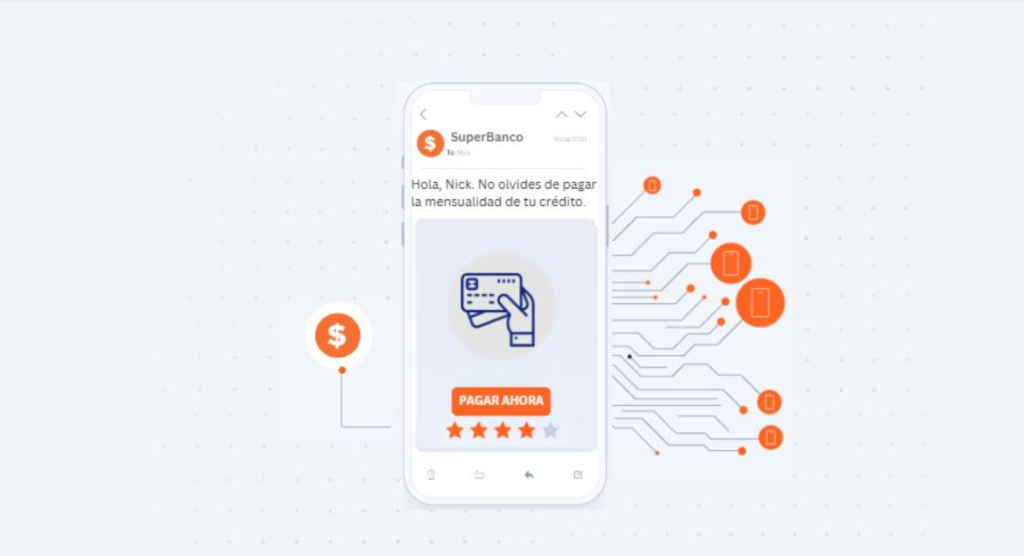 Con esta tecnología, los bancos pueden integrar sin problemas enlaces a sus productos y servicios, lo que permite a los clientes navegar directamente desde el mensaje a las funciones bancarias pertinentes con un solo toque. Este proceso simplificado mejora la experiencia del cliente y facilita unas interacciones más fluidas entre las entidades y sus usuarios, lo cual previene cualquier tipo de fraude por robo de identidad y estafa en la banca móvil.