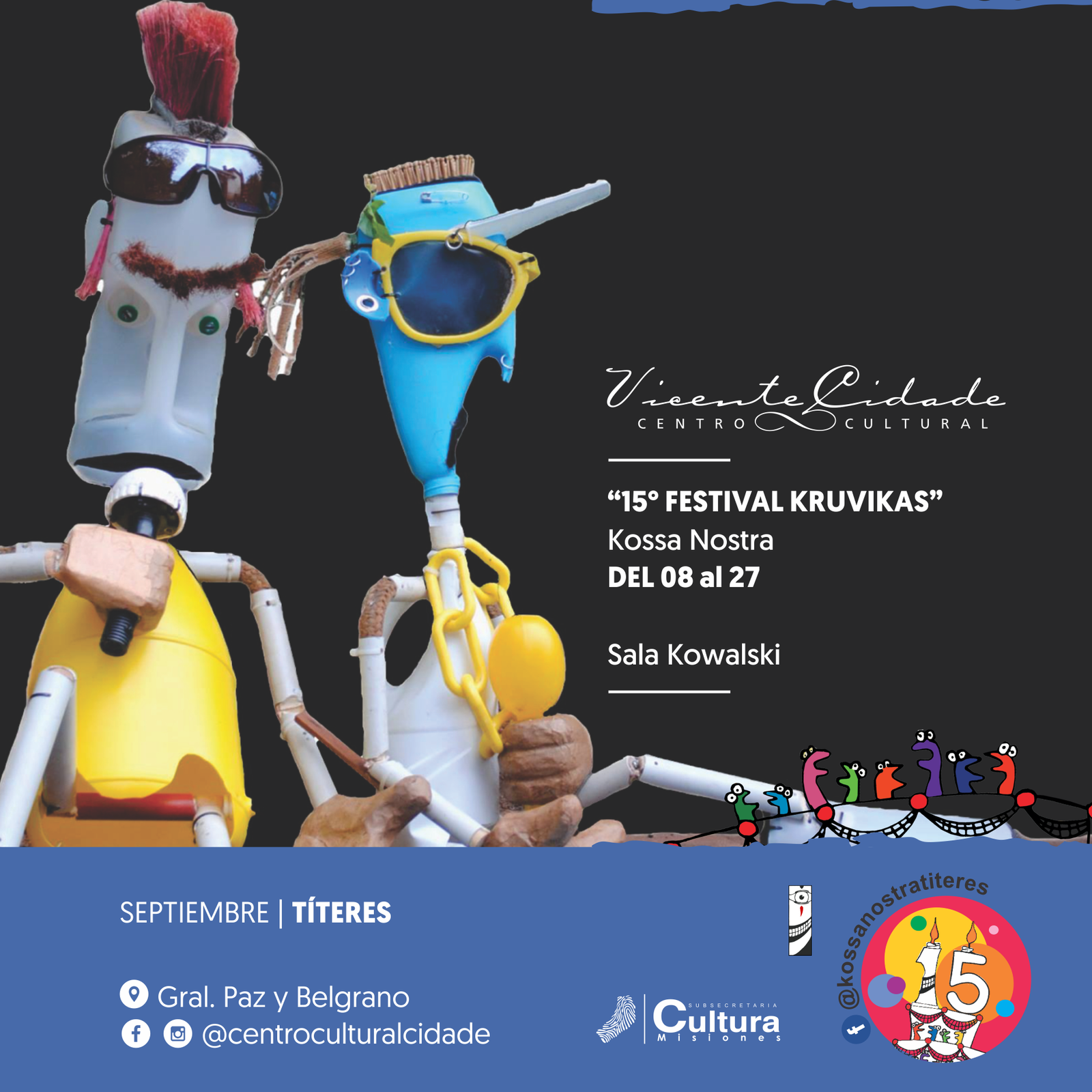 15 Festival de títeres internacional Kruvikas: Desde el viernes 8 hasta el domingo 17 la Sala Kowaski del Centro Cultural Vicente Cidade se convertirá en la casa de los títeres que vendrán a poner alegría al festival organizado por los Kossa Nostra. El derecho de espectáculo tendrá un valor de $50.