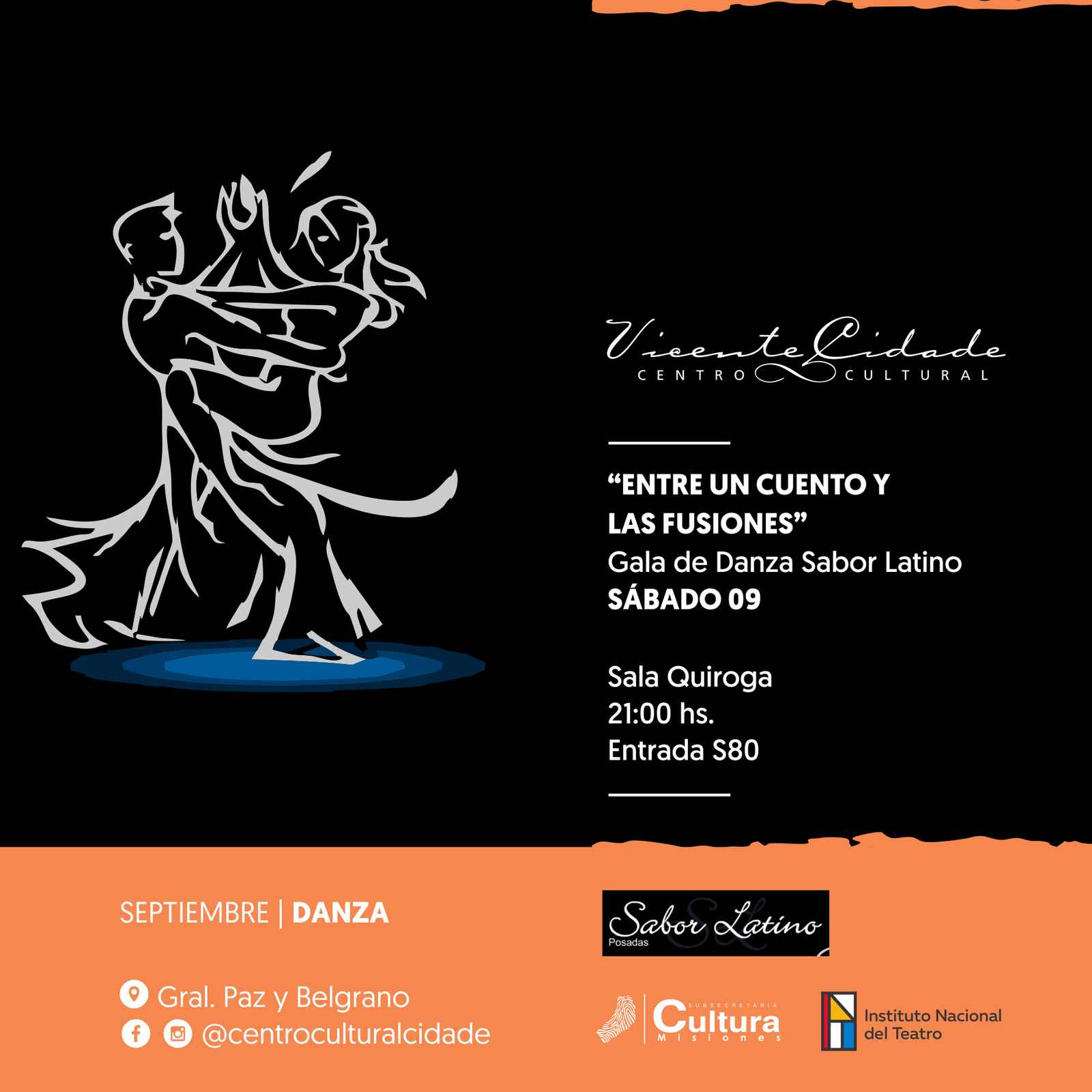 Entre un cuento y las fusiones: La academia de ritmos caribeños “Sabor Latino” se estará presentando el sábado 9 de septiembre a las 21:00 horas en la Sala Quiroga del Centro Cultural Vicente Cidade en dos partes, en la primera habrá una introducción de fantasía al mundo de cuentos a cargo del grupo infantil, para la segunda, se realizará una muestra de coreografías fusionando diversos ritmos caribeños. Derecho de espectáculo $80.
