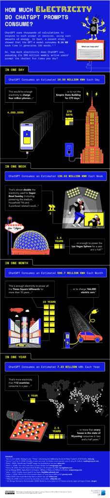 ● ChatGPT consume aproximadamente 19.99 millones de kWh al día Esto sería suficiente electricidad para cargar cuatro millones de teléfonos… o para alimentar el Empire State Building durante 270 días.