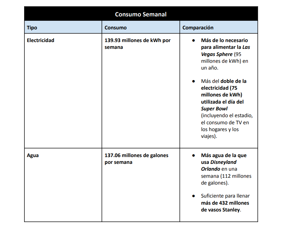 Sabemos cuánta agua y energía usa ChatGPT por prompt. Pero ¿cuánto consume en total? El equipo de Business Energy UK utilizó los hallazgos del WaPo junto con datos disponibles sobre el número de usuarios de ChatGPT para visualizar cuánta energía y agua consume el producto cada día, semana, mes y año.