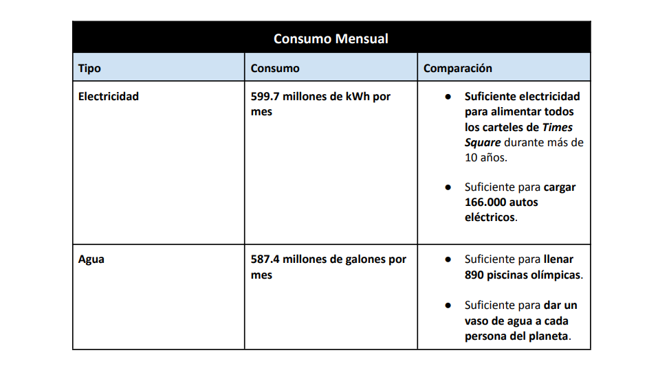 ● ChatGPT consume aproximadamente 27 mil millones de litros de agua al año Eso es suficiente agua para llenar el embalse de Central Park siete veces… o para mantener las Fuentes del Bellagio funcionando durante 595 años.