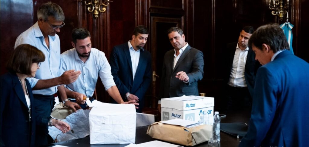 El vicejefe de Gabinete del Interior, Lisandro Catalán, encabezó en la tarde del lunes (10/02) la apertura de sobres con las ofertas presentadas en el proceso de licitación pública para llevar adelante la concesión –a título oneroso– del Complejo Terminal de Cargas (Cotecar) del Centro de Fronteras Paso de los Libres (Corrientes).