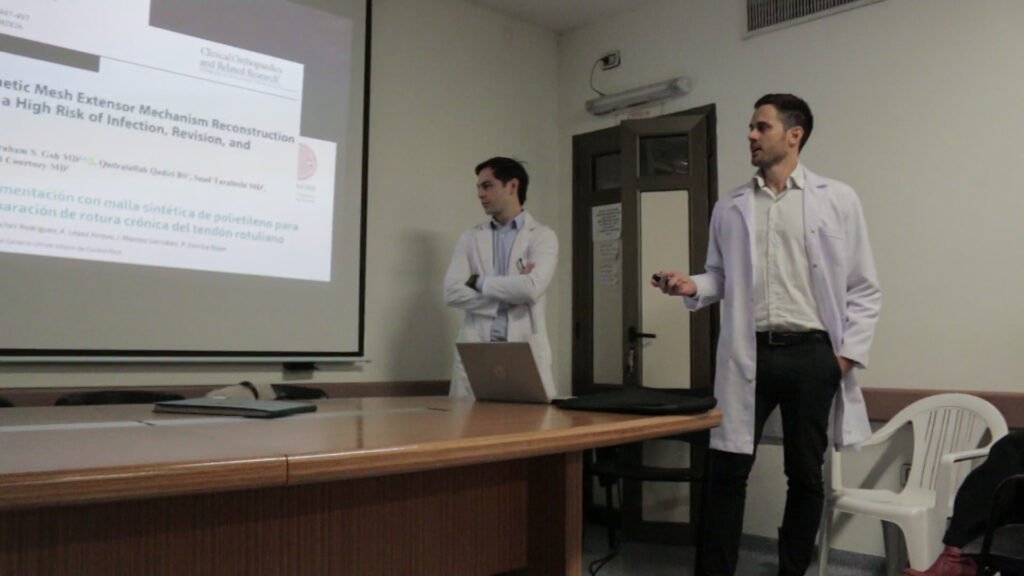 El profesional detalló que, tras la estabilización inicial, el paciente presentaba un defecto masivo en el aparato extensor de la rodilla, lo que demandó un abordaje quirúrgico innovador. Se utilizó una técnica que combina una malla de polipropileno y un refuerzo autotendinoso, logrando restaurar la función de la articulación. Después de 12 meses de seguimiento, la paciente presenta una recuperación funcional significativa y una buena calidad de vida.