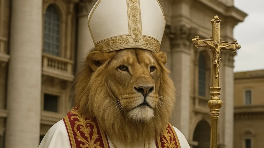 La imagen hace alusión al nuevo papa León XIV, nombre elegido por el cardenal estadounidense Robert Francis Prevost, recientemente proclamado sucesor de Francisco tras la fumata blanca desde la Capilla Sixtina.