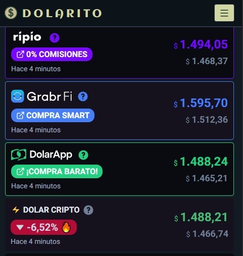 De acuerdo con el sitio especializado Dolarito, que releva los precios de las principales plataformas financieras, la billetera Ripio Wallet mostró el valor más alto de la jornada, con un pico de $1.494, mientras que DolarApp, otra de las aplicaciones más utilizadas en Argentina, ofrecía la moneda a $1.488.