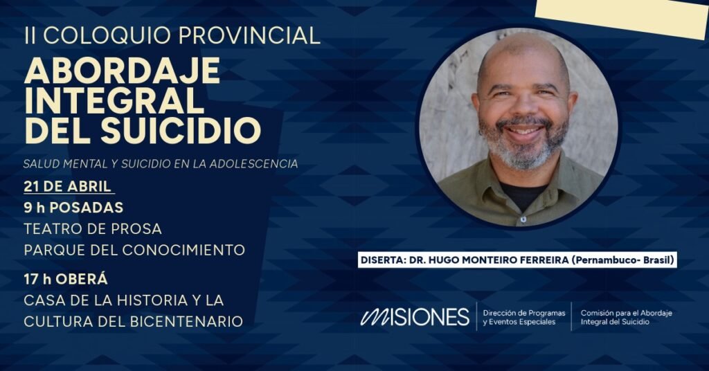El 21 de abril, en Posadas y Oberá, se llevará a cabo el II Coloquio Provincial de Abordaje Integral del Suicidio, que este año se centrará en la salud mental y el suicidio en la adolescencia. El evento contará con la disertación central del especialista en salud mental infantojuvenil Hugo Monteiro Ferreira, destacado referente de la problemática en Brasil. La actividad está organizada por la Dirección de Programas y Eventos Especiales del Gobierno de Misiones y la Comisión para el Abordaje Integral del Suicidio.