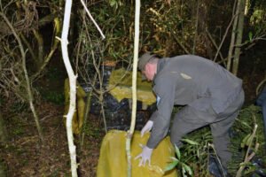 Inmediatamente los funcionarios aseguran la zona desplegando un rastrillaje encontrando 28 bultos tapados por plásticos y ramas.
