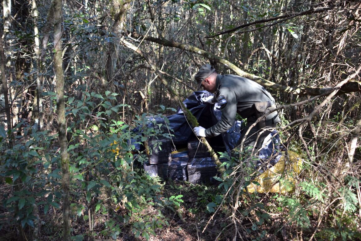 Una patrulla de gendarmes divisó a un hombre armado en una senda que conduce a un sector selvático. Al observar la presencia de los uniformados, huyó efectuando disparos al aire. El cargamento de droga fue abandonado oculto bajo ramas y plásticos.