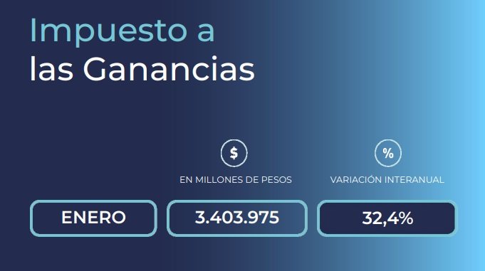 Por su parte, el Impuesto a las Ganancias registró uno de los incrementos más relevantes del mes. La recaudación ascendió a $3.403.975 millones, con una variación interanual del 32,4%. Este comportamiento posicionó a Ganancias como uno de los principales motores del crecimiento de los recursos tributarios, en línea con la evolución de los ingresos alcanzados por el tributo y su peso dentro de la estructura fiscal.