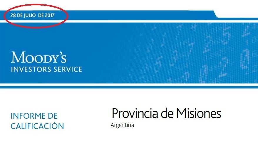 Se trata de una evaluación independiente, realizada por una de las tres calificadoras más prestigiosas a nivel internacional (las otras son Standard & Poor’s y Fitch), que se debe realizar –obligatoriamente- a partir de los bonos que la provincia emitió para renegociar la deuda con la Anses. Cuando la provincia emite deuda, debe contratar alguna de estas calificadoras para que auditen los números y emitan informes independientes para decirle a los inversores, cuál es, en su opinión, la capacidad de repago que tiene el emisor de esa deuda. En este caso, la provincia de Misiones.