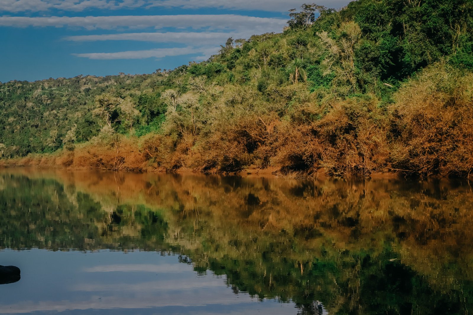 De eso se trata. De que el turista pueda apreciar la dimensión de la selva misionera como en ninguna otra parte. Estar dentro de la reserva, a escasos kilómetros de los Saltos del Moconá es estar en el medio de un inmenso manto verde de unas 500 mil hectáreas, a las que se suman, del otro lado del río Uruguay, las 17500 hectáreas del parque estadual Do Turvo, la última porción de mata atlántica del estado de Río Grande do Sul. Es territorio del yaguareté, que cada tanto regala alguna huella para los fotógrafos, pero que usualmente se deja oír por las noches, cuando sale en búsqueda de alimento que, como la selva, también es abundante: venados, tapires, cerdos de monte y dorados en el Uruguay.